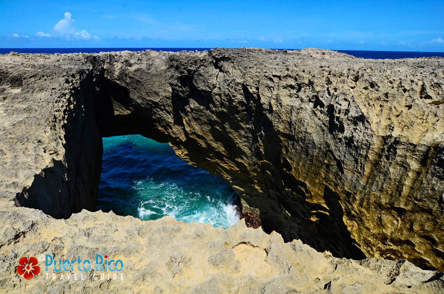 Pozo de Jacinto, a pit cave, a singularly beautiful work of art created by the azure ocean waves sits on a scenic ocean-side cliff, located in the town of Isabela on the northwest coast of Puerto Rico. More than a mysterious keyhole opening a door to the sea, this is the location for one of the favorite local legends, but also a sad one. Originally, this cave was called El Pozo de Jobos (Jobos Well), the depth of the pit cave is approximately 28-30 feet deep.